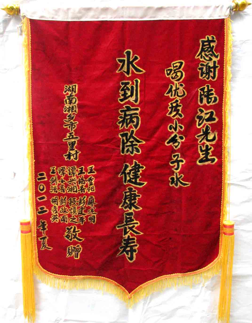 2015年潘志山主動寫一篇感想《我以親身實踐打破了冠心病、高血壓、糖尿病需終生服藥的神話》說堅持按發(fā)明人陸?江先生倡導(dǎo)的用已饑方食的方法合理膳食,我的健康狀況越來越好:糖尿病造成的視力下降有了明顯的恢復(fù),末梢神經(jīng)炎導(dǎo)致的指端潰爛現(xiàn)在完全痊愈,痔瘡自從飲用微小分子團水半年后就再也沒有復(fù)發(fā)過,氣滯血瘀造成的嘴唇暗紫也漸漸變得紅潤,舌下靜脈黑紫消失,足背的動脈由以前的隱約感到跳動現(xiàn)在變得清晰有力。[13]潘先生披露的訣竅,一是飲用微小分子團水給脫水細(xì)胞補水,二是已饑方食”養(yǎng)生智慧,患者都能做到。